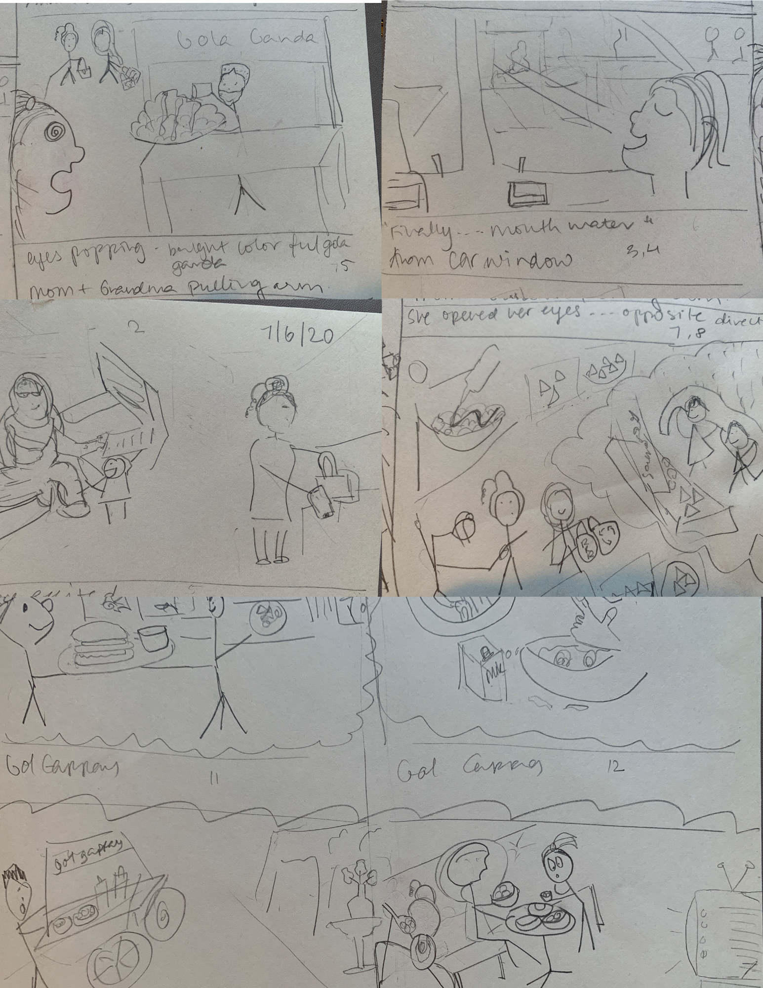 When I began explaining Iftaari to him, moving images of a young Pakistani American girl popped in my head like corn. I exclaimed: I just got an idea of a little girl craving Pakistani street food on Eid! She visits the Eid market for a taste of nostalgia but her Naani jaan and Amma pull her away every time she is about to take a bite. Mina ends up falling asleep out of exhaustion and hunger, and dreams of her old home in Karachi. When she finally wakes up, she sees a spread of her favorite foods and a grand Eid party with all her friends and family!